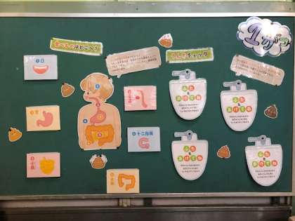 1月の保健室掲示は、「食べ物はどこへ?」です。口から入った食べ物がどのように便になるのかわかりやすく掲示されているので、機会があればご覧ください。
