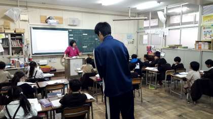 教室の見学をしたり、管理作業員さんと一緒に、校舎内外の清掃や作業をしたりしました。また、休み時間には子どもたちと思いっきり遊んでいたので、加賀屋小学校の子どもたちは本当に喜んでいました。