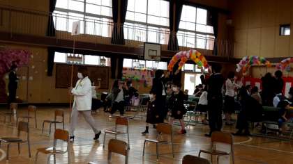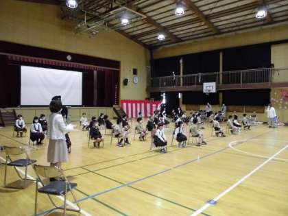 今日は1年生にとって初めての登校となった「入学オリエンテーション」でした。校長先生のお話や担任紹介のあと、担任の先生から一人ひとり名前を呼ばれましたが、みんな緊張しながらもしっかりとお返事ができました。「加賀屋小学校紹介DVD」などのお話も最後までしっかりと聞いていて、大変すばらしかったです。