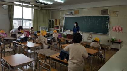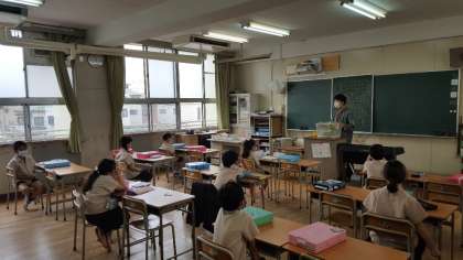 明日19日(火)は1,2,6年生の登校日です。1年生のみ全員前半に登校(2,6年生は前・後半に分かれる)し、4つのグループに分かれて10時に下校(学校を出発)します。