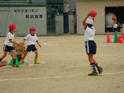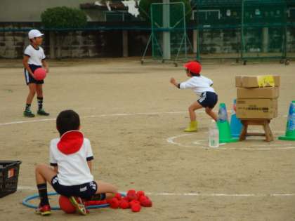 「わくわく なげっこランド」ということで、簡単な作戦を立てまとにボールを当てます。