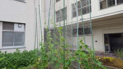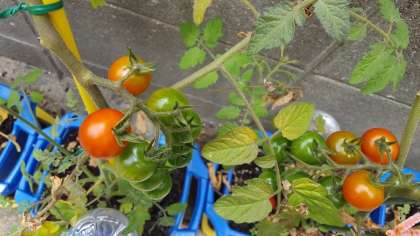 1年生の植えた朝顔の種からは、今は本葉も出てきておおきくなってきています。2年生の植えたさつまいもは学習園を葉が覆うようになってきました。4年生のひょうたんも大人の背を超えるようになってきました。3年生のミニトマトも実が赤く色づいてきて、見つけた子から「おいしそう〜」の声がきかれました。
