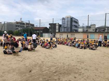 今日の6時間目は、台風を想定しての一斉下校でした。一斉に運動場に集まるのは今年度初めてでした。6年生が1年生の手を引いてやさしく並ばせているのが印象的でした。