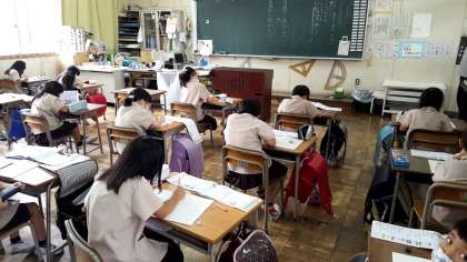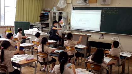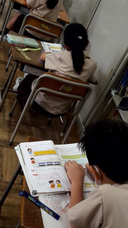 5時間目、2年1組では漢字ドリルの書き取りを2回、3回とがんばって練習していました。2年2組では長さの単位「cm」の学習をしていました。次は自分のものさしを使って身近な物の長さを測るそうです。来週も楽しみですね。
