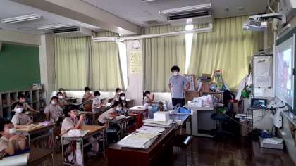 2学期が始まりました。朝日の角度はずいぶん斜めになってきたなと感じますが、昼間の猛暑は今日も相変わらずです。今日から給食も始まり、水筒や汗拭きタオル等の準備もありがとうございました。朝の検温とマスクの着用につきましても1学期同様どうぞよろしくお願いします。写真は今日の2時間目に行われた始業式の様子(各学級)です。