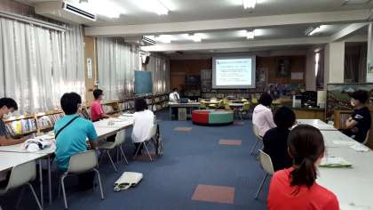大阪教育大学附属特別支援学校より講師先生にお越しいただき、教員研修を行いました。子どもたち一人ひとり受け止め方や理解に違いがあるのを教員がどのように受け止め、子どもたちにどのようにかえしていけばよいのか、今後の授業での活用や教材のヒントを教えていただきました。