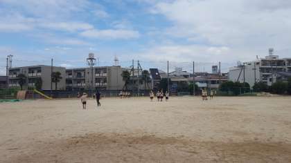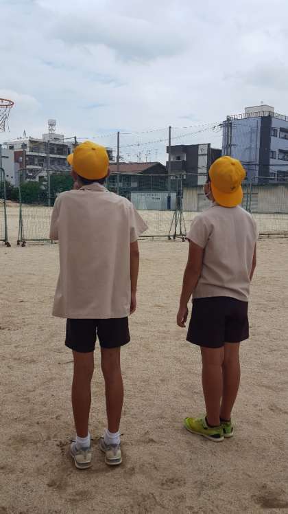 今日の3時間目、5年1組の児童が運動場で雲の観察をしていました。