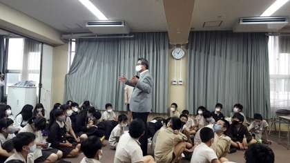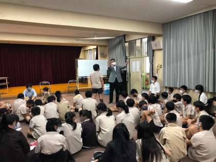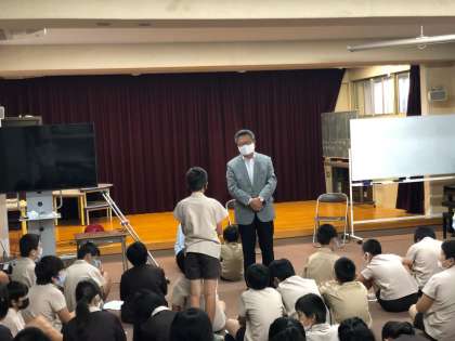 6年生が昔の加賀屋の様子について、昔のことをよく知る松崎さんをお招きしてインタビューをしました。小学校の周りにキャベツ畑があってちょうちょを追いかけて遊んだことや木津川までの間には池があってふながよく釣れたこと、お風呂屋さんがたくさんあった話しなど、次々と質問に答えていただき、子どもたちもいっぱいメモを取っていました。快くたくさんのお話をしていただき、ありがとうございました。