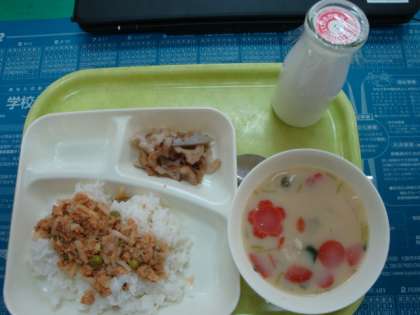 今日は、正月の行事こんだてで、さけちらし、ぞう煮、焼きれんこんでした。