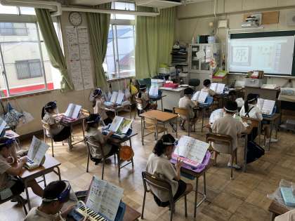 9月も最終日となりました。標準服の上着を着てくる児童もちらほらみられるようになってきました。季節の移ろいは早いですね。写真は上から4年2組(算数)2年1組(図工)2年2組(音楽)のがんばっている様子です。