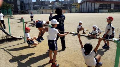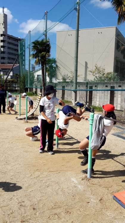 1年生が体育で「前回り」や「さかあがり」をがんばっていました。学習カードを見ながら新しい技にチャレンジする姿がありました。