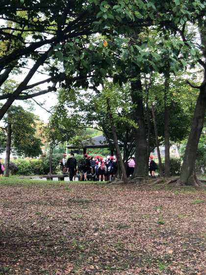 住之江公園の中で楽しむグループ・迷うグループと様々な子どもたち