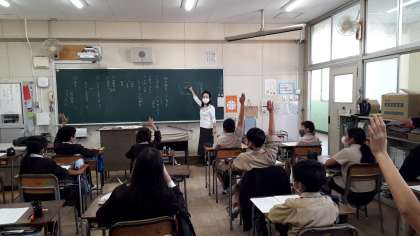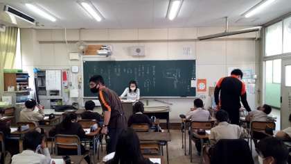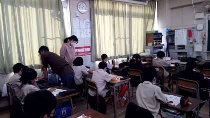 大阪市教育委員会学力向上推進室指導員の吉川さわ子先生にお越しいただき、5年2組が「経年テスト」の練習問題にチャレンジしました。