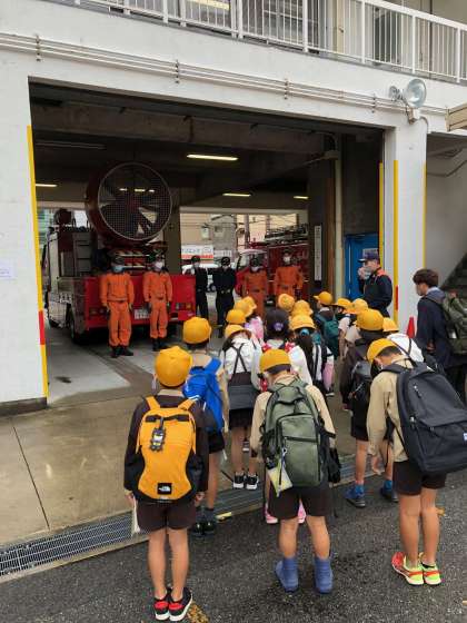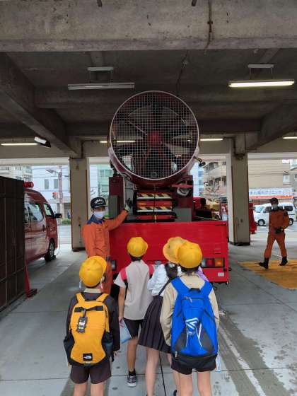 住之江消防署で3台の消防車についての説明を聞きます