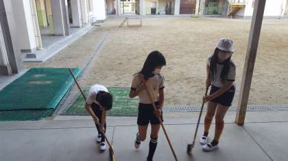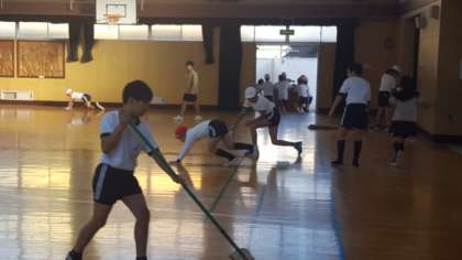 5年生が作品展の会場となる講堂をきれいに片づけてくれました。とび箱やマットを移動させ、床や講堂周辺の渡り廊下もきれいに清掃してくれました。5年生の皆さん、ありがとう!