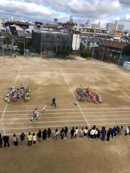 スタートの時には…一度撃たれて倒れるアクションをして参観者に受けてました。