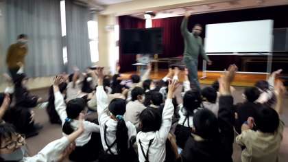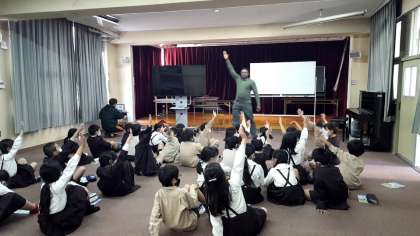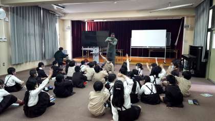 今日は水曜日、C−NETの先生が来られる日です。6時間目、3年生が多目的室でレッスンを受けている一コマです。KAI先生のあいさつにみんな元気よく答えていました。