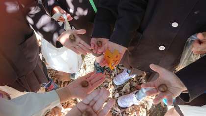 採れたどんぐりやきれいなはっぱを「見せ合いっこ」しました!