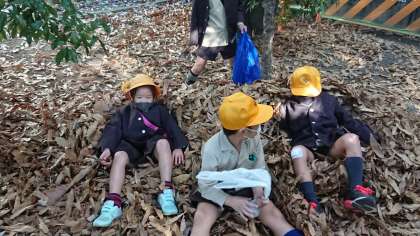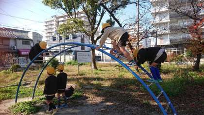 すばらしい良い天気で1年生みんなうれしそうです。遊具でも少し遊びました。