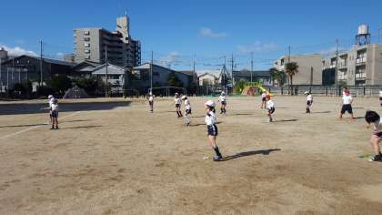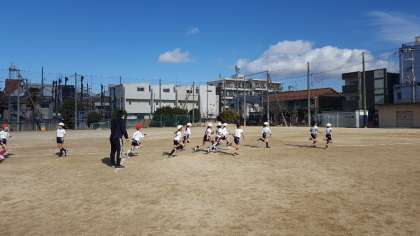 4時間目、2年2組が運動場で体育をしていました。かけあし、なわとびやサッカーなど、寒くても笑顔いっぱい、運動場いっぱいに体を動かしていました。