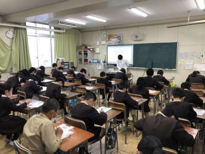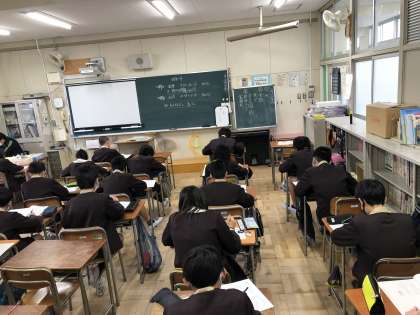 今日は、各学年同時に「国語」聞き取り問題からスタートです。今年が小学校での経年調査が最後になる6年生も真剣に音声を聞き取っていました。