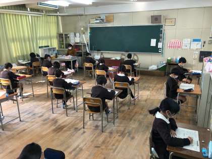 3年生は、今年が初めてです。今日は算数と理科を受けますが、これは一つ目の算数のテストの様子です。みんな真剣に問題を読んでいました。