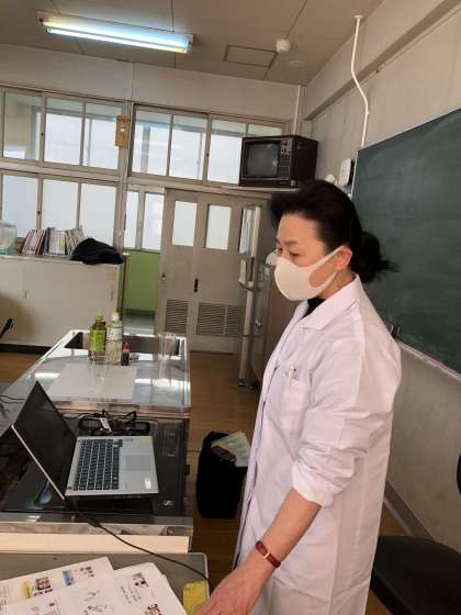毎年、6年生の卒業前に「薬の正しい使い方」について、学校薬剤師の先生に来ていただいて学習しています。今年は、新型コロナウィルス感染拡大防止対策のため、子どもたちは教室で、薬剤師の先生は家庭科室からteamsで資料を見せながら実験もいつも通りに実施して教えてくださいました。