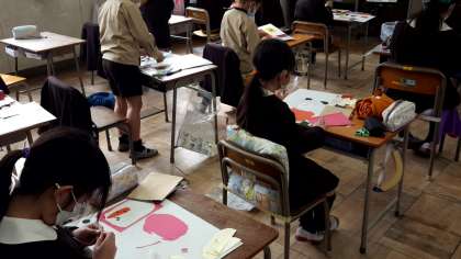2年2組では図工でカラー版画をしていました。色のついた専用の紙を自分の思う形に切って、台紙に貼りつけていきます。細かい作業なのですが、集中して取り組んでいました。どんな作品になるか、出来上がりが楽しみですね。