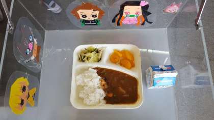 ハヤシライス、キャベツのひじきドレッシング、みかん(缶)、牛乳、でした。