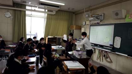 今日の放送朝会では、1月に行われた「漢字検定」の表彰が行われました。最優秀賞1名、優秀賞3名、努力賞5名の計9人が放送で名前を呼ばれ、教室にて表彰されました。すばらしい成績が読み上げられるたびに5・6年生の教室では歓声がわき起こっていました。おめでとう!