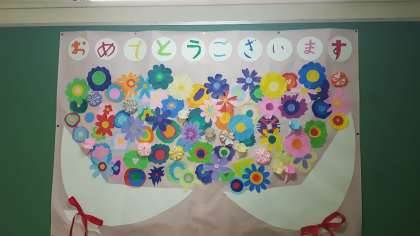 いよいよ明日は卒業式の予行練習があります。をします。階段の掲示板を見ると、「お祝いムード」が高まってきますね。