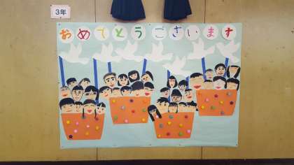 各学年からの会場内の掲示です。卒業生をみんなで応援しています。