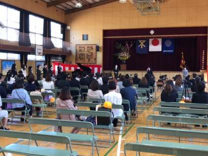 式の中では、新2年生が映像で加賀屋小学校のことを教えてくれました。新6年生も昨日、準備をとても頑張ってくれました。コロナ禍の中でもみんなで協力・工夫してとても良い式になりました。