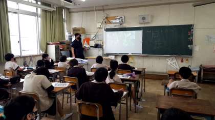 5年生は今日はC-NETの日でした。写真は外国の子どもが英語で話をしているのを聞いているところです。集中して学習に取り組んでいました。