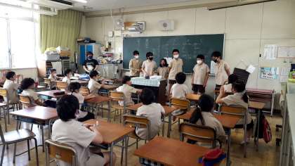 今年度初めての「たてわり活動」がありました。6年生を中心に代表・リーダーの選出、旗のシンボルマークなどについて話し合いました。