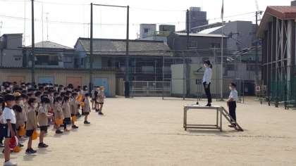 看護当番の先生からは、月目標・週目標と注意事項を聞きました。