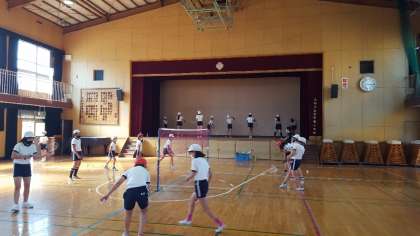 上からバドミントン、マンガ・イラスト、屋外スポーツの各クラブです。今年初めてのクラブ活動の感想は〜?お家でも聞いてみてください。