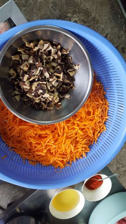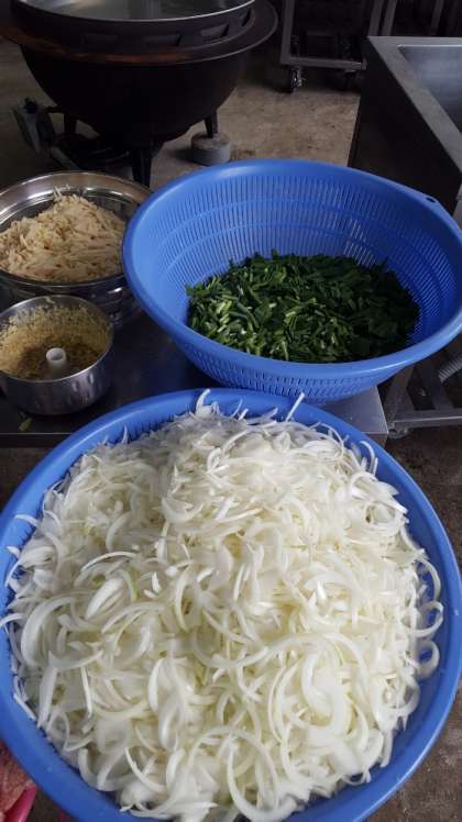 給食室の調理の下準備の様子です。ここから何ができるのでしょうか?
