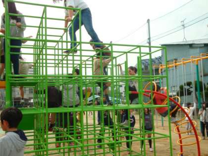 のぼり棒、ジャングルジム、すべり台、ロープのぼりと楽しんで遊んでいました。