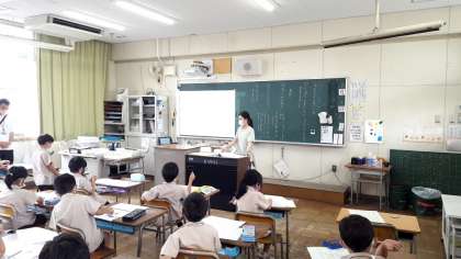 2年2組では学習園に植えた「さつまいものつる」の学習をしていました。
