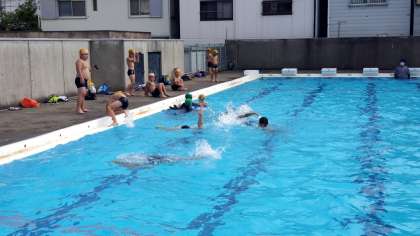 3年生のプール水泳の様子です。今日は心配される「にわか雨」もない良いお天気で、みんな気持ちよさそうに練習していました。