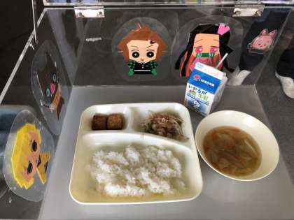 本日の給食は「ゴーヤチャンプルー、すまし汁、あつあげのしょうがじょうゆかけ、ごはん、牛乳。」食材にも「夏」を感じるようになってきましたね。今日もたいへんおいしかったです。