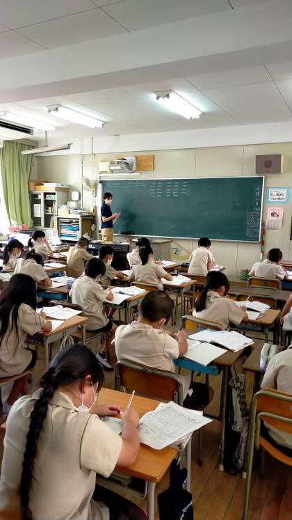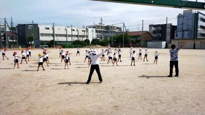 1年生の体育の授業風景と3年生の算数の授業風景です。
