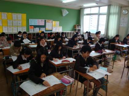長文を読み取り、自分の考えを記述する問題が多く、児童は悩みながら取り組んでいました。