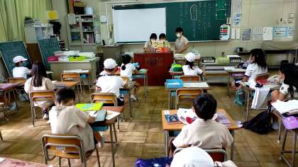 図書委員会による読み聞かせをしている様子です。