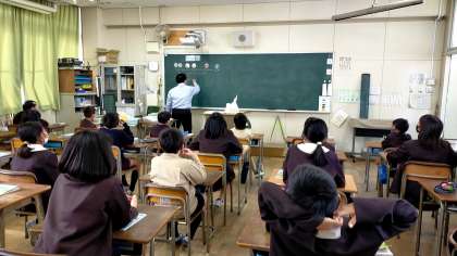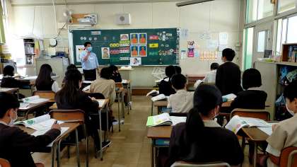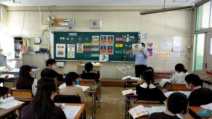 今日は、他校の栄養教諭の先生にお越しいただき、5年生に朝ごはんの大事さを教えていただきました。
