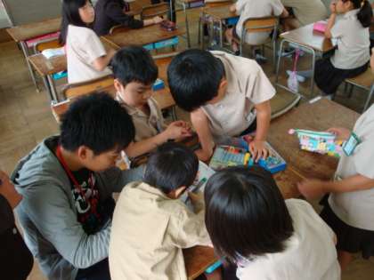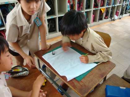 高学年を中心にていねいに旗の絵を描いていました。