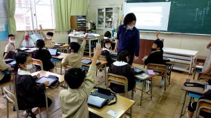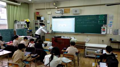 デジタルドリルの支援員さんに補助していただき、ログイン方法や、ログインしてからの問題の解き方などをしました。