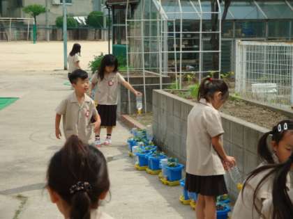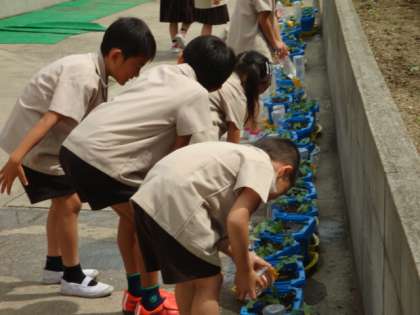 特に1年生は、1人ずつ自分の植木鉢に植えているので一生懸命です。