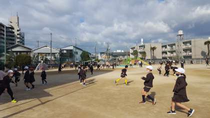 今日の昼休憩の時間、雪がちらついてきて大喜びで運動場を元気に駆けまわる児童の姿がみられました。